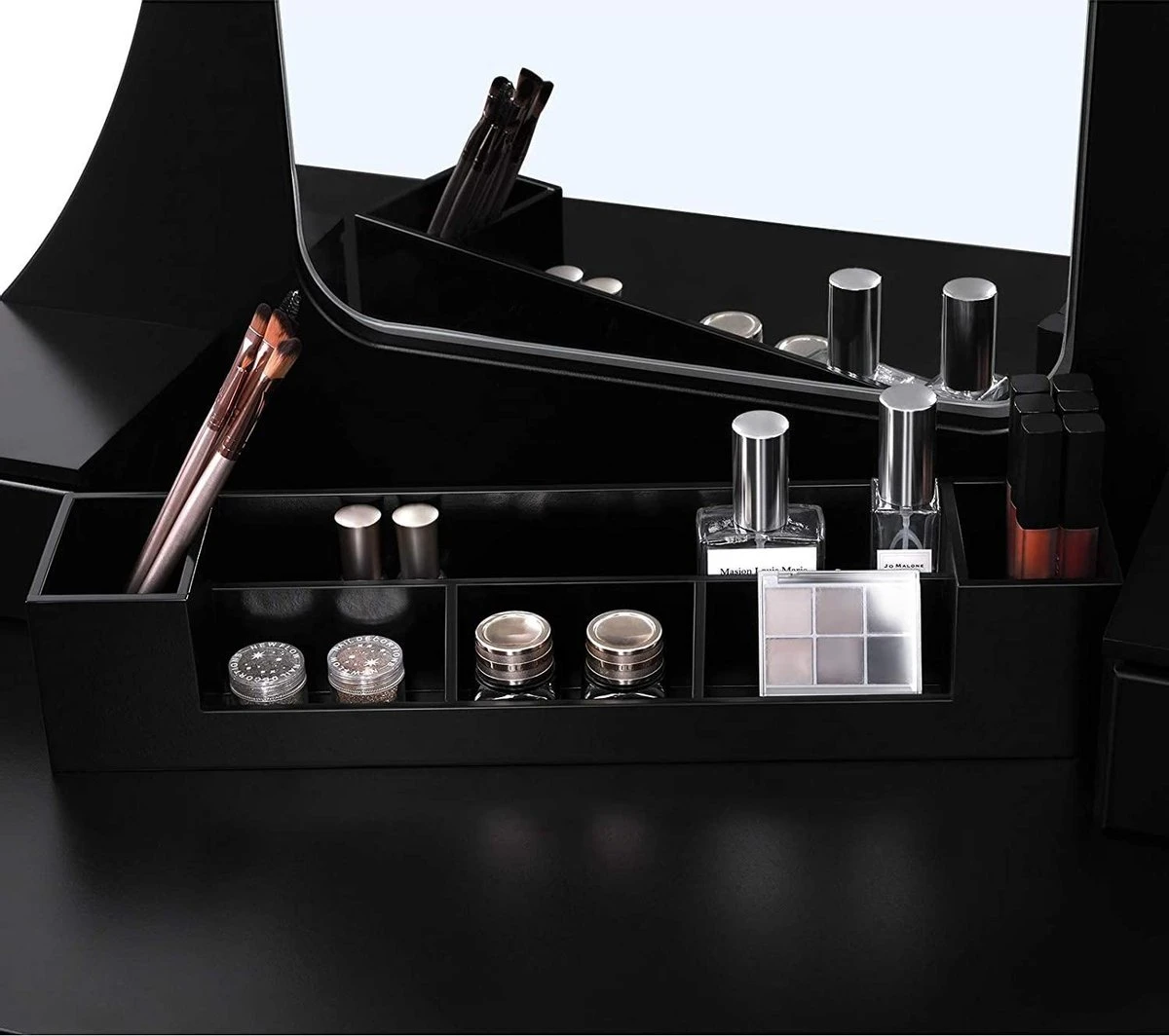 Merkloos Kaptafel, Kaptafel Met Grote Spiegel Zonder Frame, Toilettafel, Kaptafel, Voor Make-up, Gewatteerde Kruk, 5 Laden, Verplaatsbare Opbergdoos, Zwart RDT25BK