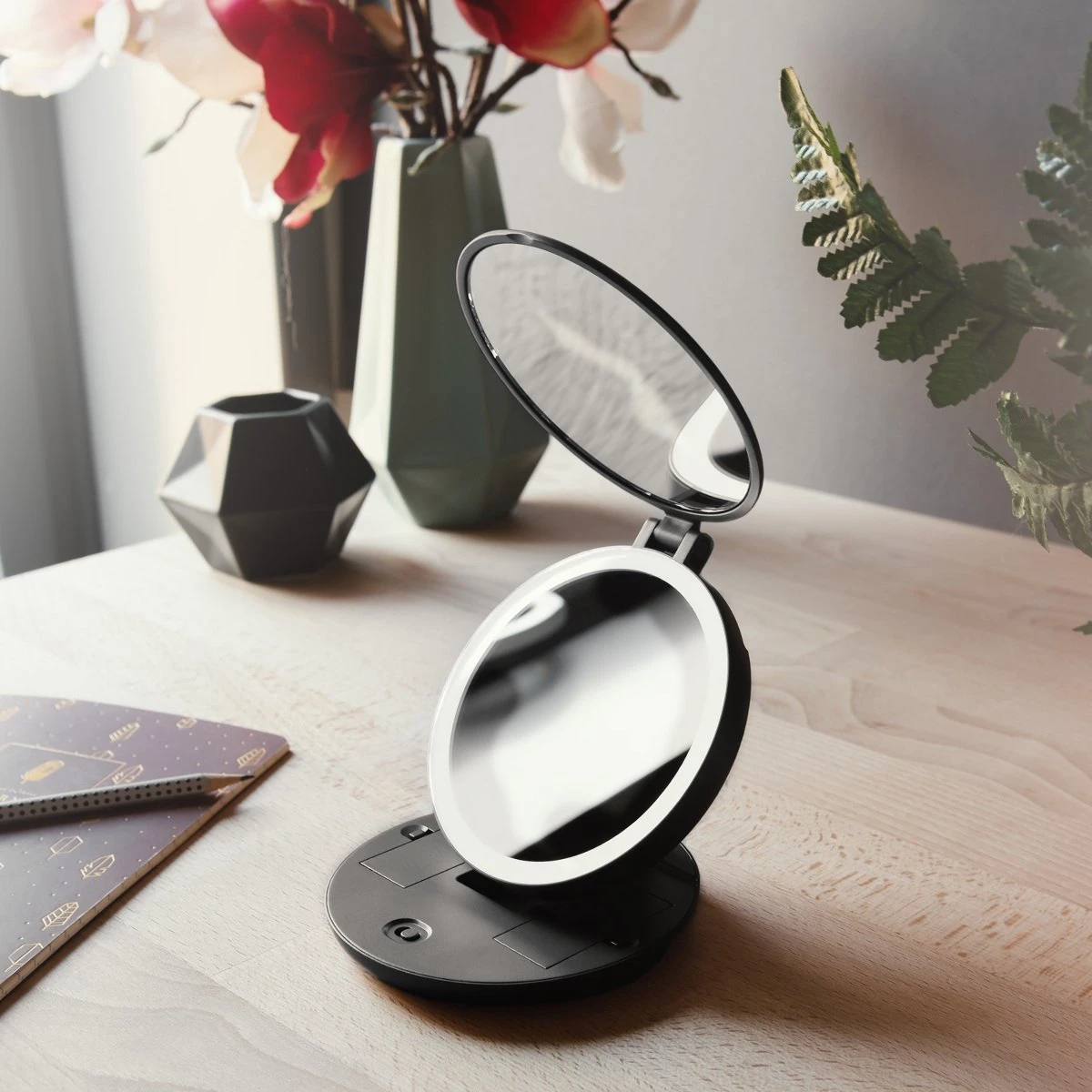 Navaris 1x/5x Vergrotende Make-up Spiegel – Compacte Opvouwbare Kap- En Reisspiegel – Led-verlichte Dubbelzijdige Make-upspiegel – Zwart