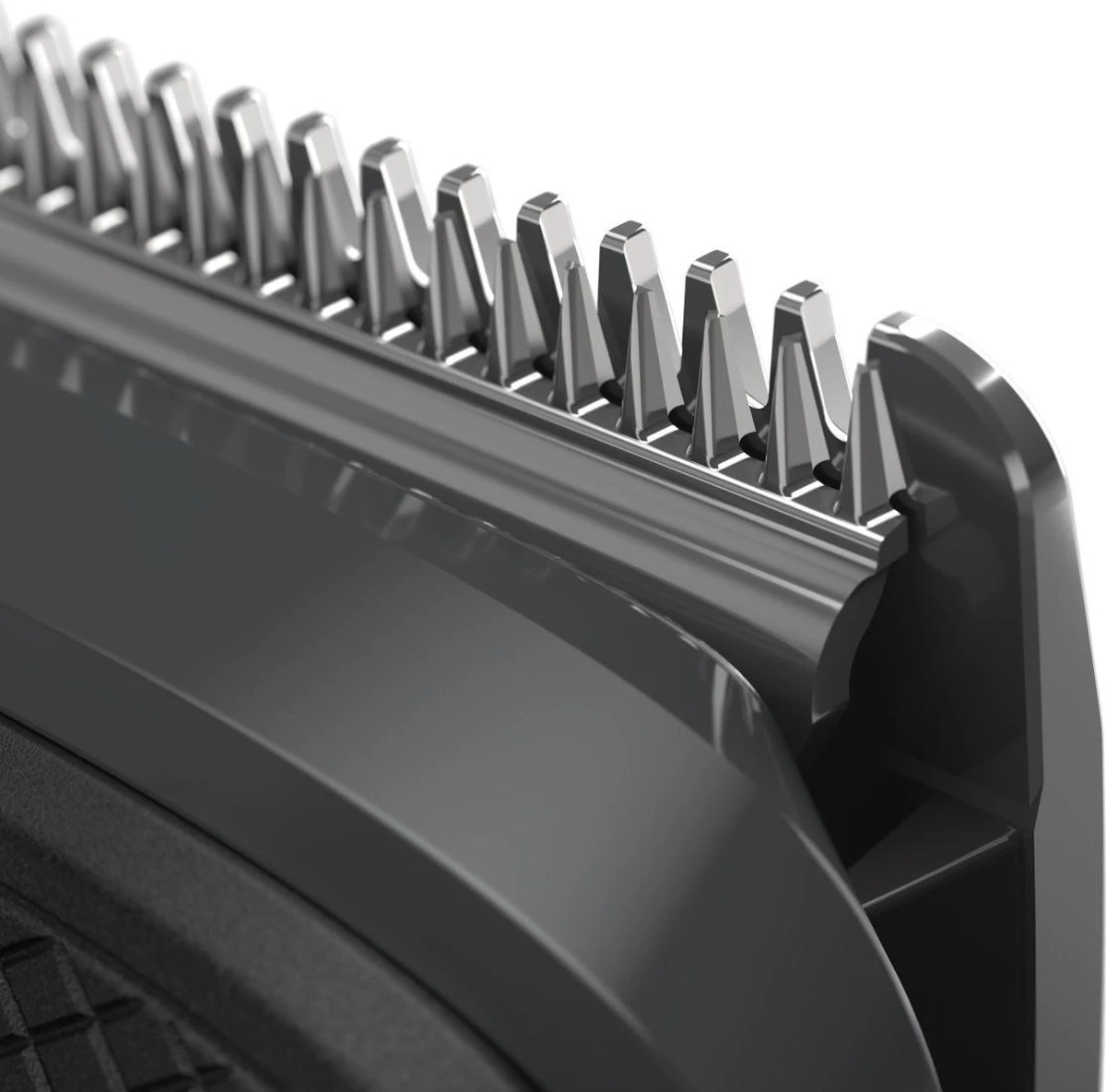 2 stoppelbaardkammen (1,2 mm), 1 instelbare baardkam (3 tot 7 mm), 3 haarkammen (9, 12, 16 mm) en 1 kam voor lichaamsbeharing (3 mm).